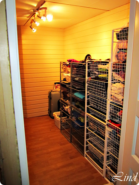 Kommer rett inn i garderoben, her skal vi ordne oss skyvedøre foran kurvstativene. Noe vi tror blir veldig bra.